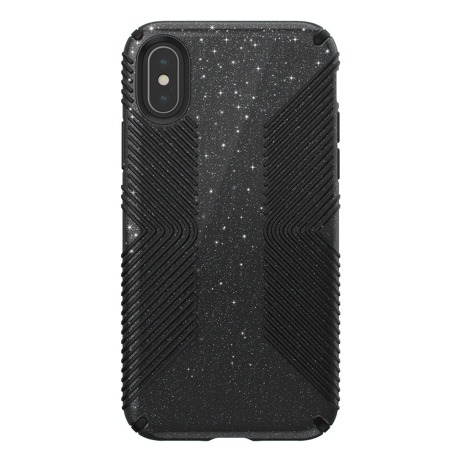 10-Foot Drop-Protection With IMPACTIUM Shock Barrier/ Two Tough And Durable Layers Of Protection/ Raised Bezel Screen Protection/ Shimmering Glitter Crystals/ Protective No-Slip Grip/ Allows For Wireless Charging/ Obsidian Black With Silver Glitter Finish